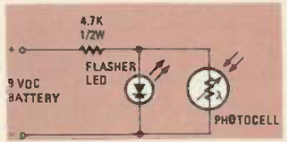 The figure shows how to control the blinking of a 5 V blinking LED with an LDR. The LED only blinks when the light is cut off. The circuit is from a Radio Electronics from October 1980.