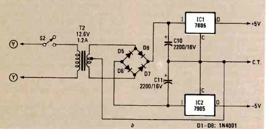 This circuit for a maximum current of 1 A is the most common version that uses the 78 and 7905 regulators. The circuit is from a Radio Electronics magazine from August 1982. The regulators must be equipped with heatsinks.
