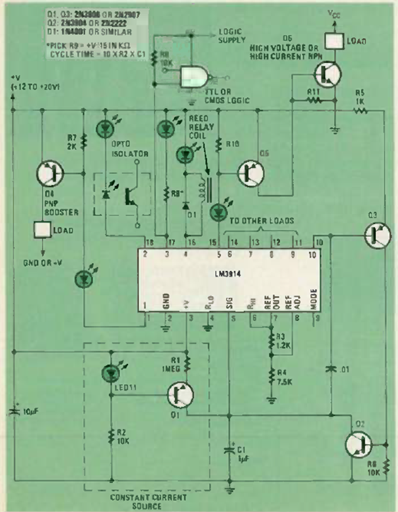 We found this circuit in the October 1980 issue of Radio Electronics magazine. The circuit uses general-purpose transistors driving a relay.