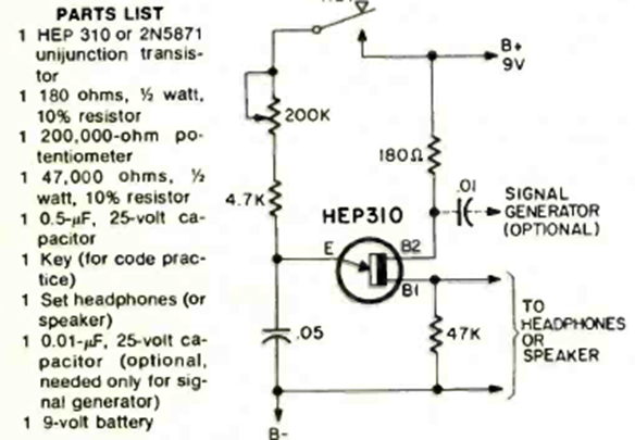 This simple basic circuit that appears in several places on this site from various sources is from the February 1973 Radio Electronics magazine. The maximum frequency is around 100 kHz depending on the transistor.