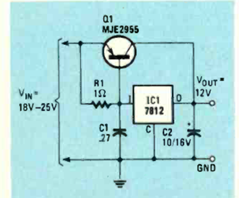 This circuit appears elsewhere on our site with a variety of transistors. This one is from a Radio Electronics issue from July 1984. The integrated circuit and transistor must have heat sinks.