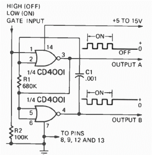 The frequency of this oscillator depends on the capacitor and R1 which can be changed. The circuit was found in the November 1974 Radio Electronics magazine.