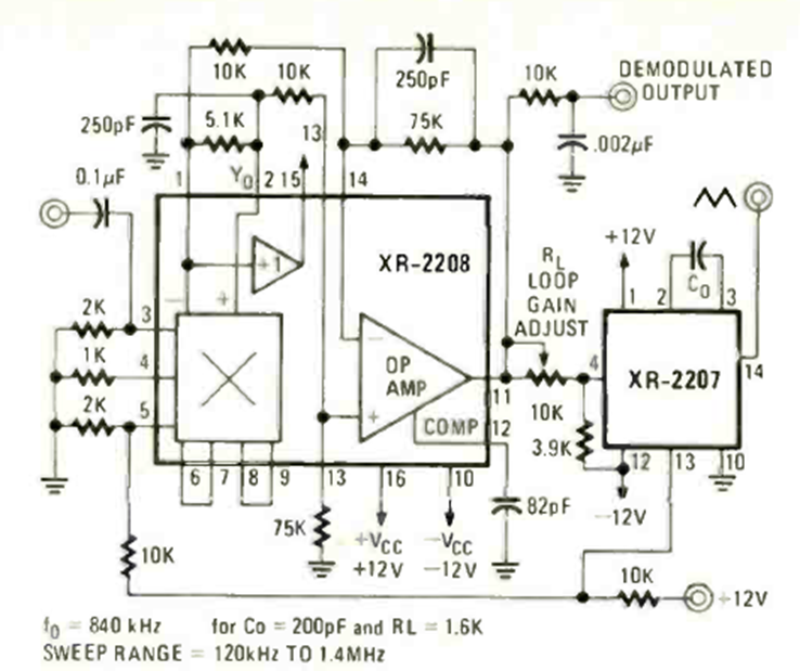 This PLL circuit was found in the April 1978 issue of Radio Electronics magazine. The circuit is powered with up to 15 V voltages from a symmetrical source.