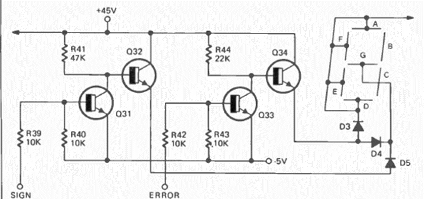 This configuration for logic circuits that perform operations with negative numbers was found in the August 1973 issue of Radio Electronics magazine. The circuit uses common transistors and was implemented in a calculator of the time.