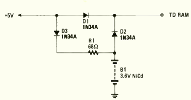 This circuit is from an August 1984 Radio Electronics magazine. It monitors the state of a RAM backup battery. Resistor R1 determines the battery charge.