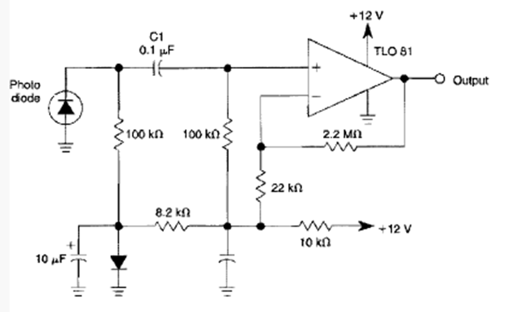 This circuit for link or alarm was found in the Encyclopedia of Electronic Circuits Volume 5 of 1995. The circuit uses a photodiode as a sensor and has its gain given by the negative feedback resistors.