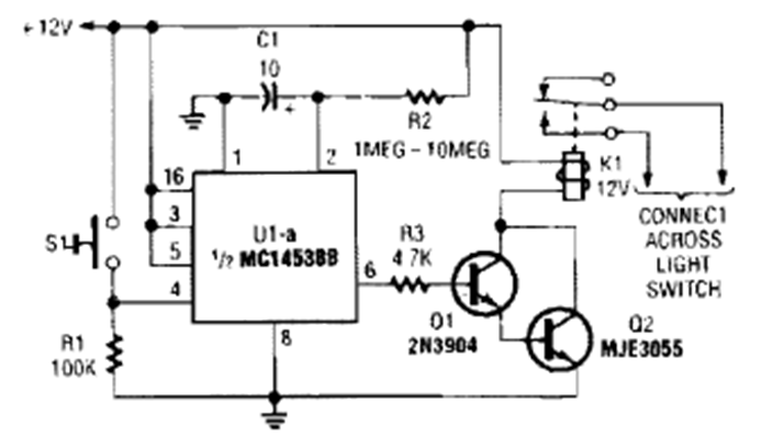 Indicated for automotive use, this circuit was found in a Popular Electronics from the 90s. The circuit uses a power transistor that must be equipped with a heatsink.