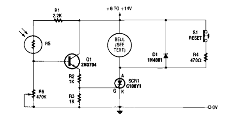 We found this circuit that triggers an SCR in the Encyclopedia of Electronic Circuits volume 5 of 1995. The circuit is powered by voltage according to the warning load.