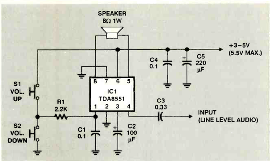 This interesting circuit for the RDA8851 allows you to obtain two volumes with a simple touch. The circuit is from an Electronics Now from December 1988. Note the amplifier voltages.