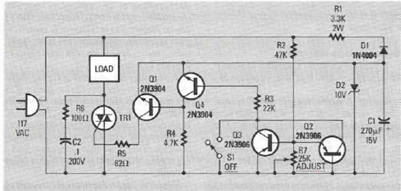 This circuit turns off when switch S1 is opened. The circuit is from the 1989 Radio Electronics Experimenter edition; The triac must be controlled according to the load.