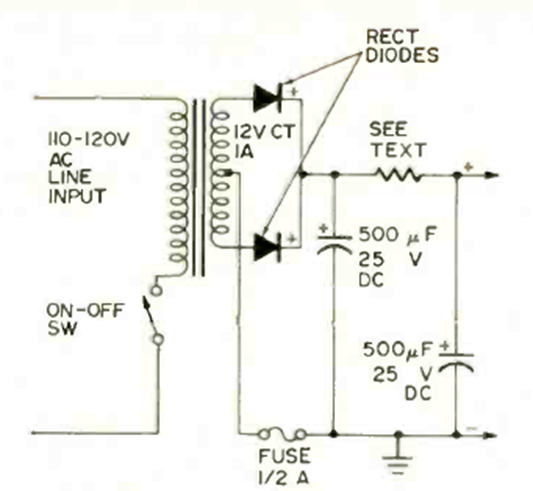 This simple unregulated power supply was taken from a December 1970 Radio Electronics magazine. The unregulated resistor should be a 10 ohm to 100-ohm wire according to the load.
