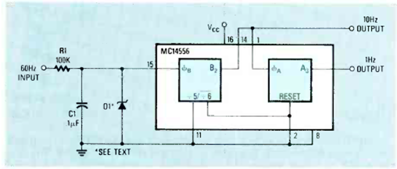 This time base circuit was found in the January 1988 issue of Radio Electronics magazine. The output signals are 1 Hz and 10 Hz TTL.
