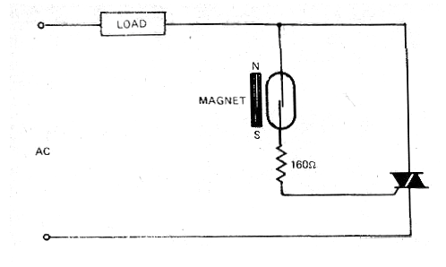 We find this simple circuit in an English publication called Electronic Circuit Design on spring 3 of 1980. The circuit shows how a reed-switch of low current capacity can be used to trigger a triac and thereby control a high-power load. In this circuit the current in the reed switch is a few hundred milliamps at most. The Triac can have multi-amp currents, such as the TIC series (TC226, TIC236, etc.).