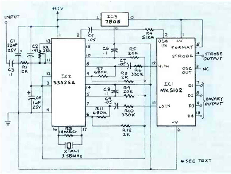 This circuit was found in the 1987 Radio Electronics magazine. The components used are integrated circuits of the time.