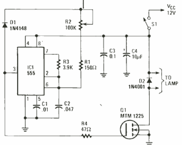 This dimmer was found in the Electronics Experimenter Special projects of 1983. The circuit uses common components. The MOSFET can be of any type according to the lamp.