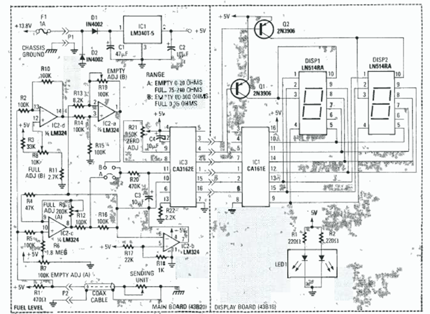 This two-digit circuit was found in the 1999 Radio Experimenter Handbook. It uses the CA3161 and CA3162 A/D converter pair common at the time.