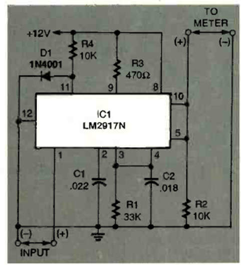 This circuit can measure frequencies up to 10 kHz using a digital multimeter or the 7107. The circuit is from an Eletrctronics now magazine from November 1996.