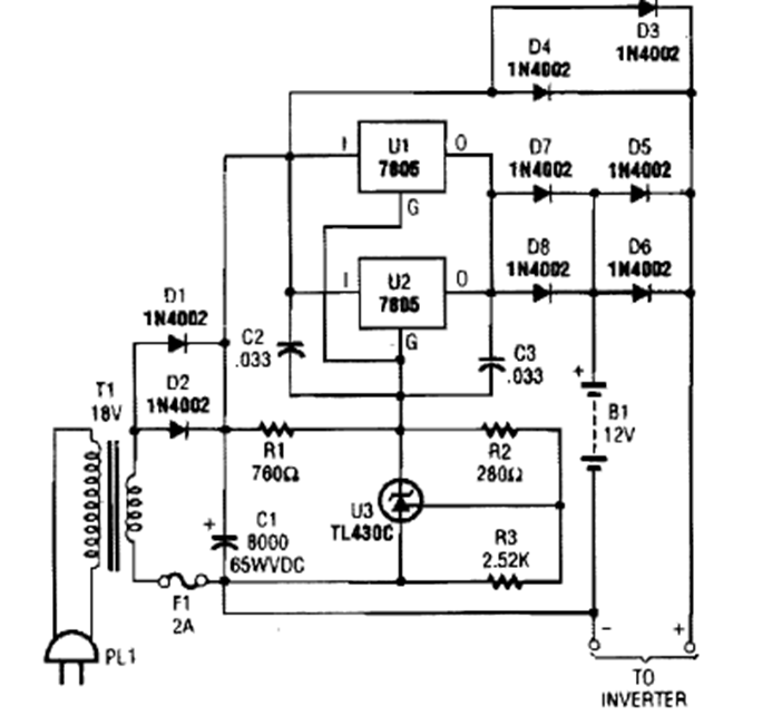 This power charger was found in a 1990s issue of Popular Electronics. Integrated circuits must be equipped with a heat sink.