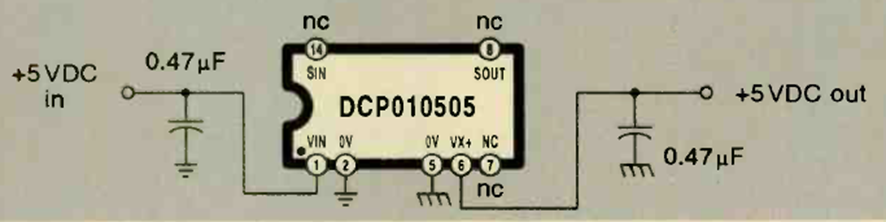 This isolated circuit converts 5 V to 5 V x 50 mA with isolation up to 1,000 V. We found it in the August 1998 issue of Electronics Now. The integrated circuit used is not very common today.