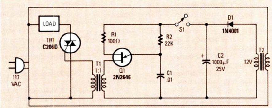 This circuit is one of many of its kind that can be found on this site. This one is from a September 1987 Radio Electronics. The triac must be controlled according to the load.