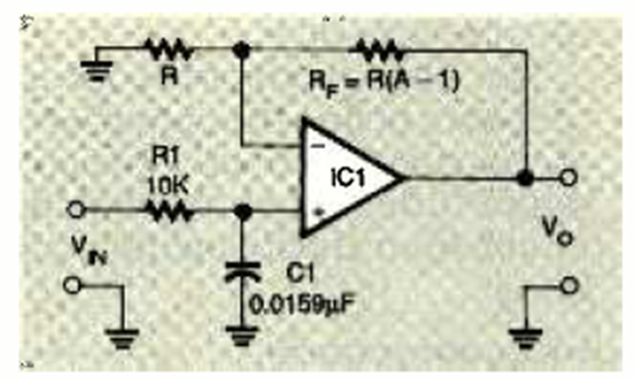 This first order filter that can be implemented with any operational amplifier was found in the March 1997 Electronics Now magazine. The power supply must be dual.