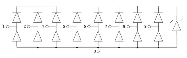 Semtech RClamp03348P RailClamp® ESD Protection Diode is designed to minimize both ESD peak clamping and TLP clamping voltage. This diode is for up to eight lines on high-speed ports and the maximum capacitance of each line to ground is only 0.65pF. The RailClamp® ESD protection diode features 3.3V of working voltage and 0.42Ω typical (I/O to GND) low dynamic resistance. This diode comes in a 9-pin DFN 3.80mm x 1mm x 0.50mm 9-lead package and the intra-pair lead pitch is 0.40mm. The RailClamp ESD protection diode is Pb and Halogen-free. Typical applications include V-By-One, LVDS, eDP, MHL, and eSATA.